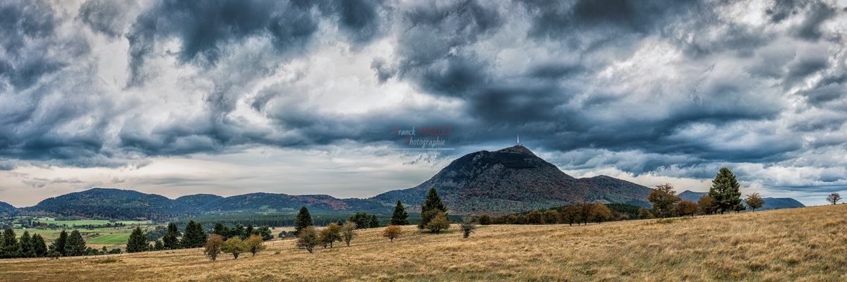 Panorama d’un automne sur le puy de dôme et la chaine des puys.