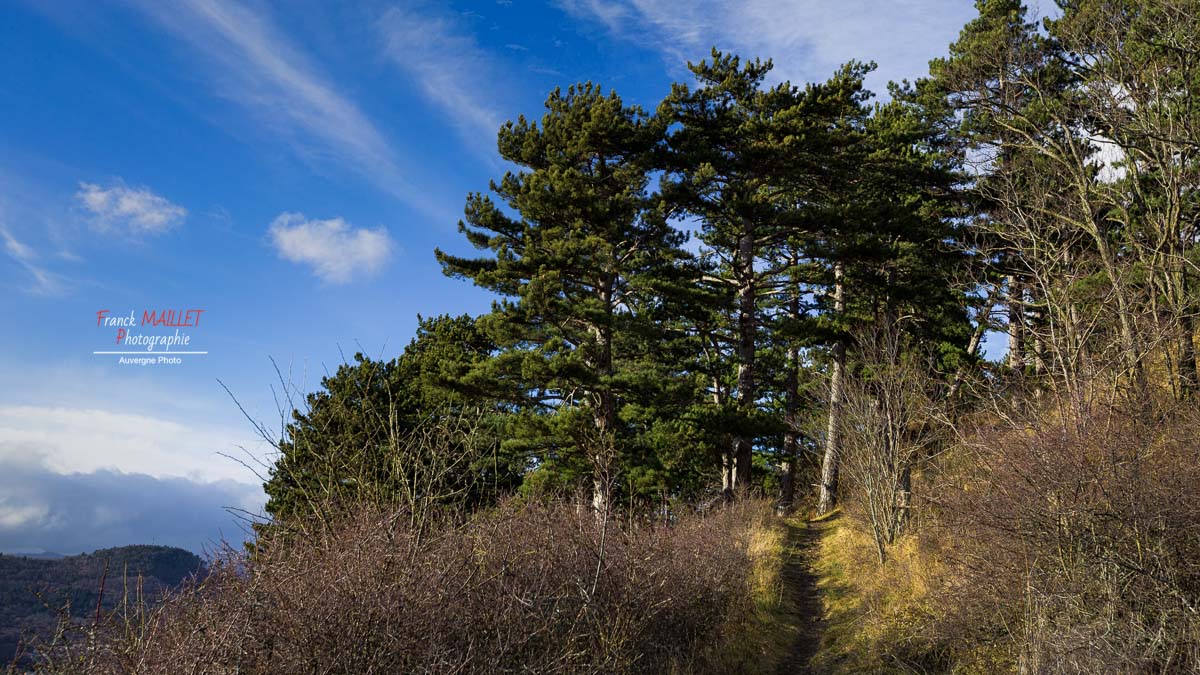 La montée du puy de Montrognon est franche. Des pins sont d’ailleurs arrachés par la vitesse du vent, et malgré tout soutiennent encore ce puy par leurs racines. Ces arbres déracinés se tiennent à 45°, reposant sur d’autres arbres en pleine forme. N’y allez pas un jour de vent, car vous devrez passer sous ces arbres.